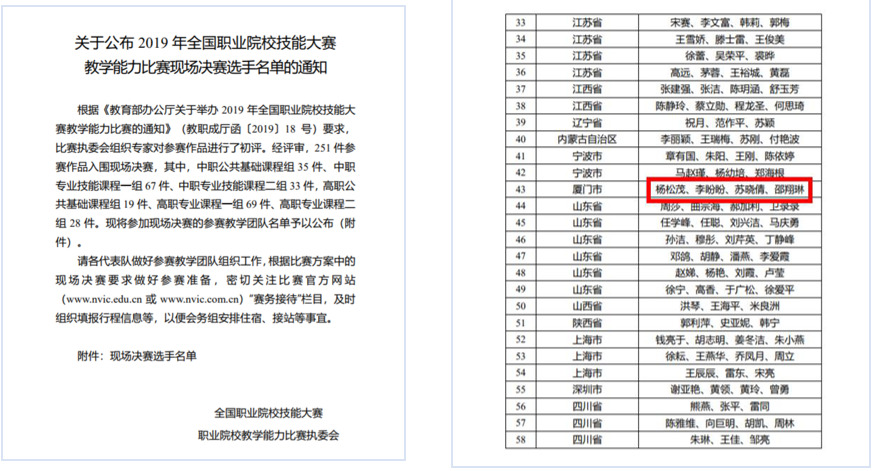 随着改革的深入,集美工业学校在专业人才培养方面进行了全方位的提升,特别是2019年获得全国职业技能大赛教师教学能力比赛全国二等奖。