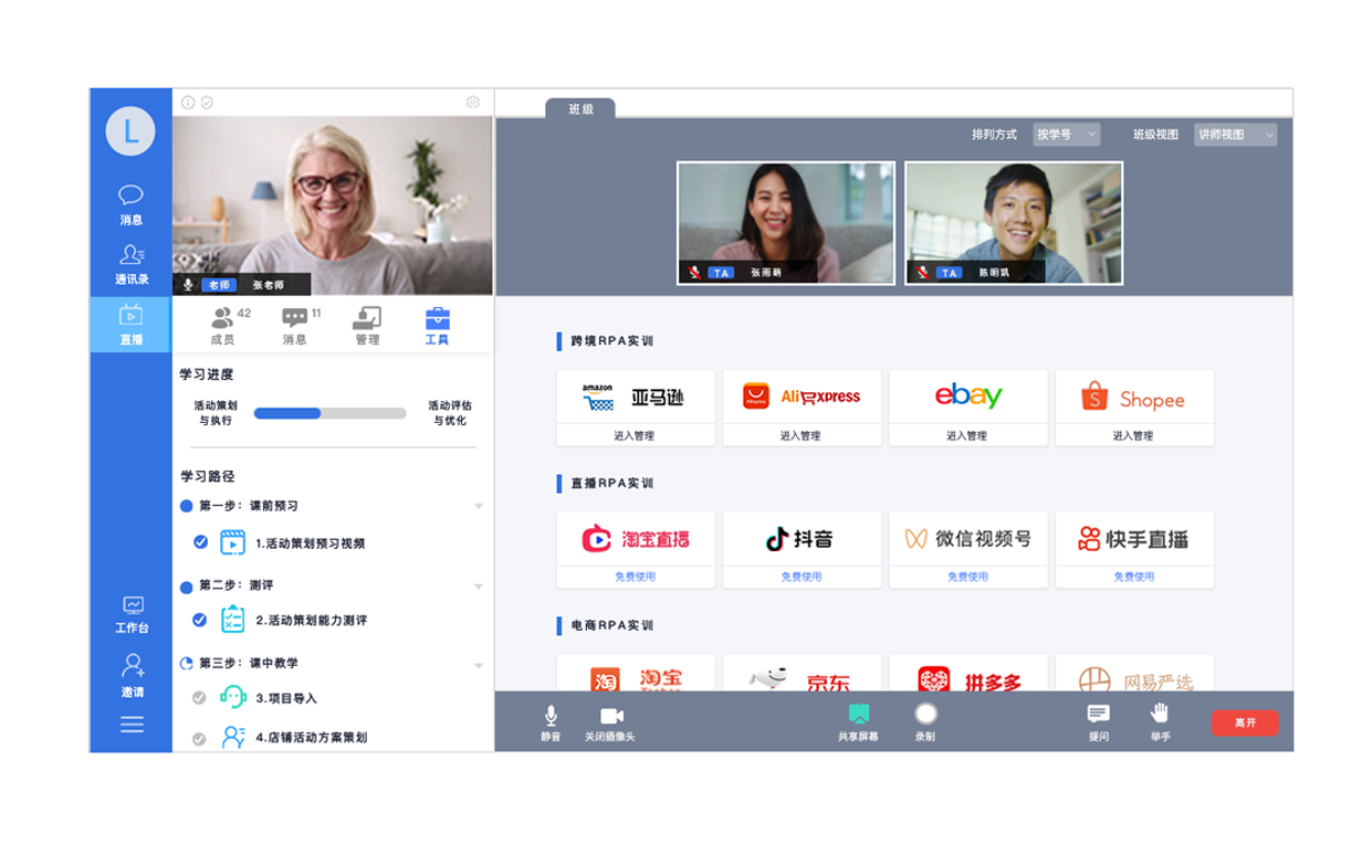 通过产业双师模式,大规模将企业导师通过直播等形式引入到学校,形成大规模产业导师进课堂的普适模式,助力三教改革。