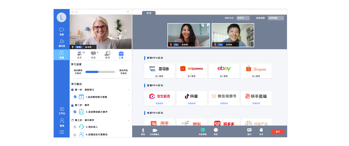 过去教师使用实训软件都是以集中实训的形式存在,有了RPA,混合式教学变得可行,做中学、学中做变得更易实现。