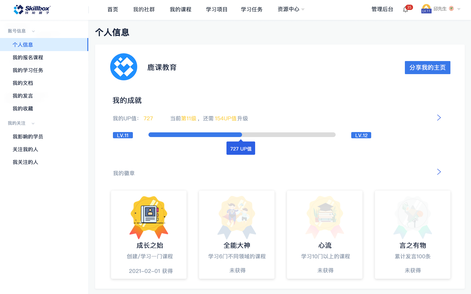 所有学习内容均可以被记录,学分考核、获得、积累、兑换、达成完全数字化