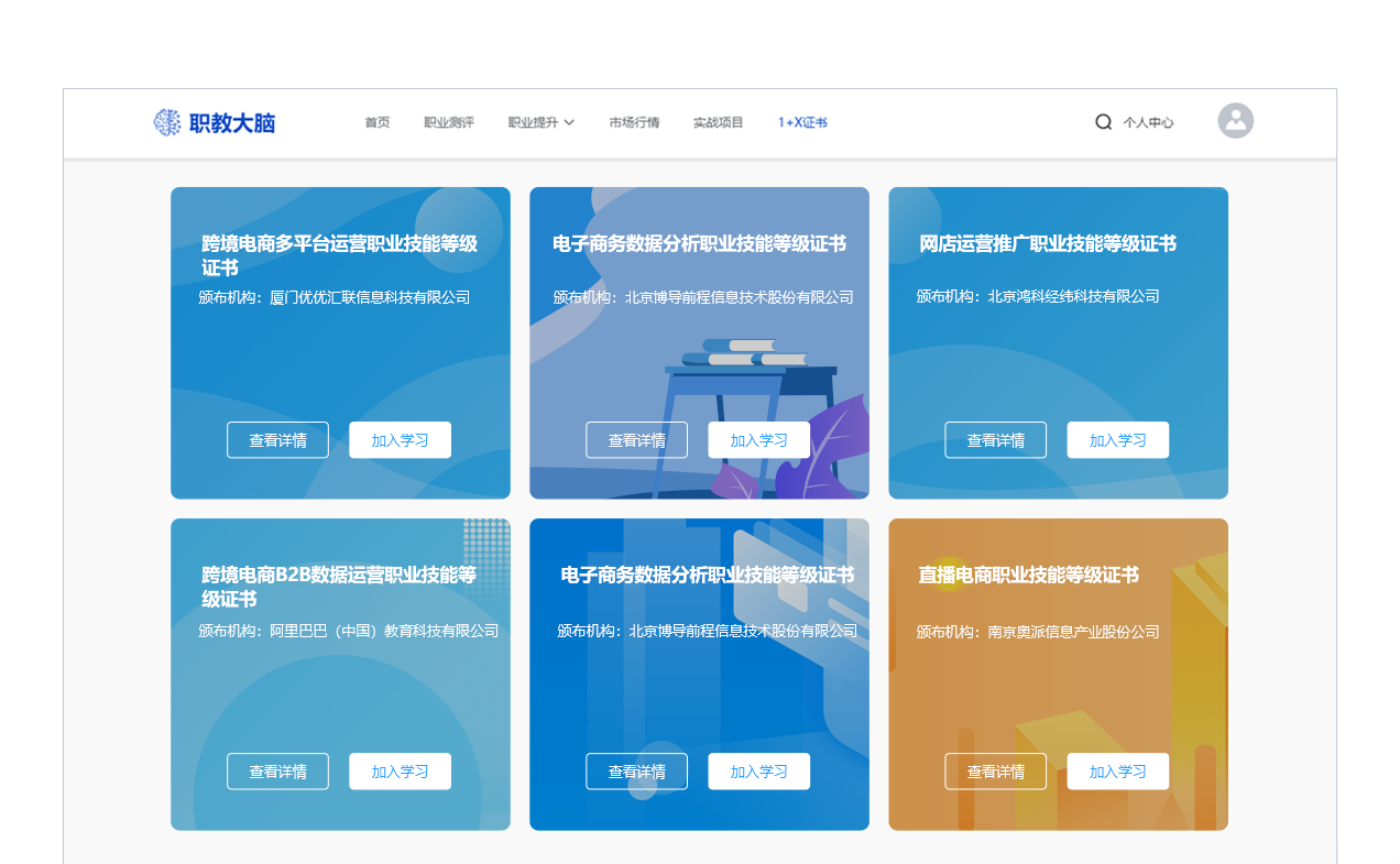一款具备各行业人才需求报告、学情分析、职业测评、1+X以及自适应学习的综合职业学习平台
